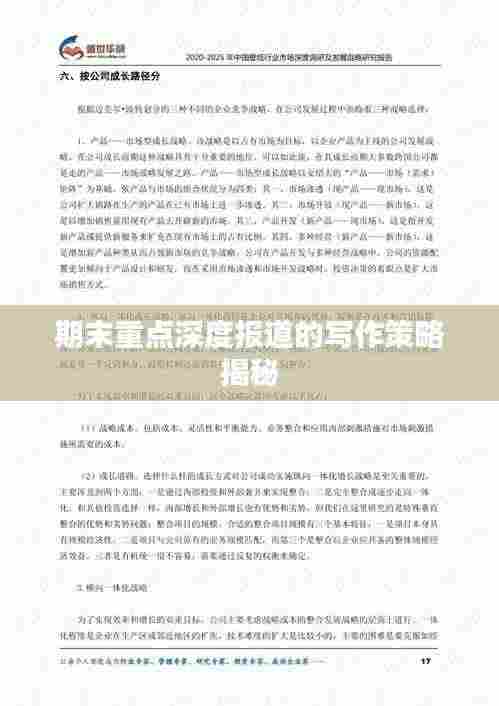 随着学期的结束,深度报道的期末重点成为了许多新闻从业者关注的焦点,如何撰写一篇高质量、有深度的期末重点报道,让读者能够全面、深入地理解报道内容,是一项需要技巧和策略的任务,以下是一些关于如何写深度报道期末重点的建议。